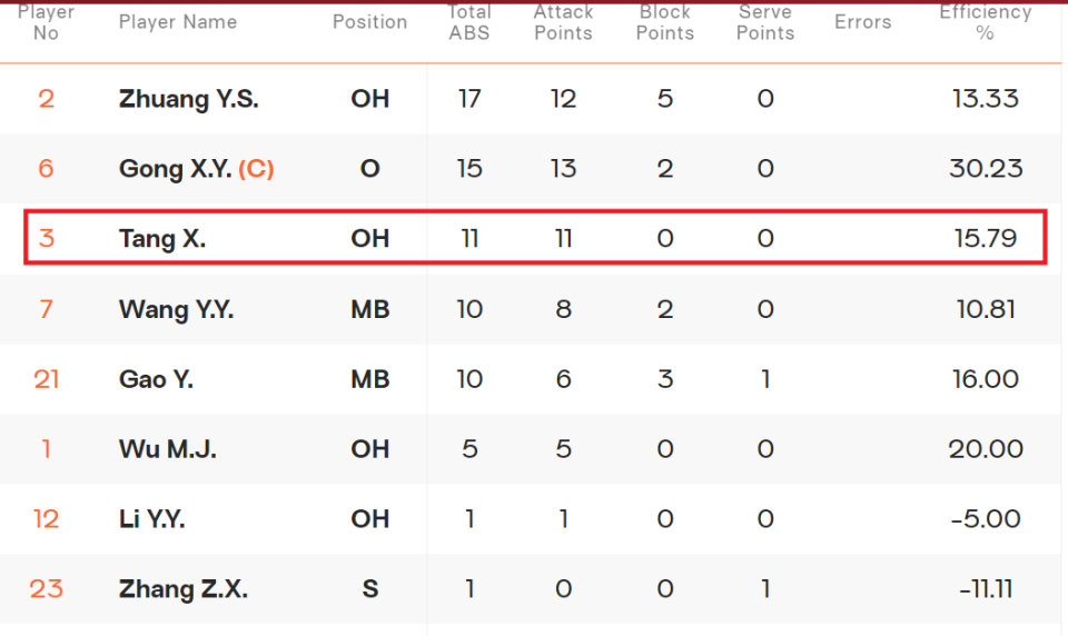 唐欣的扣球效率比较高。后两局比赛,中国女排多点开花,打出了灵活多变的战术。哥伦比亚女排的战术素养确实相对差一些,在中国女排找到节奏之后,她们失去了抗衡的能力。
